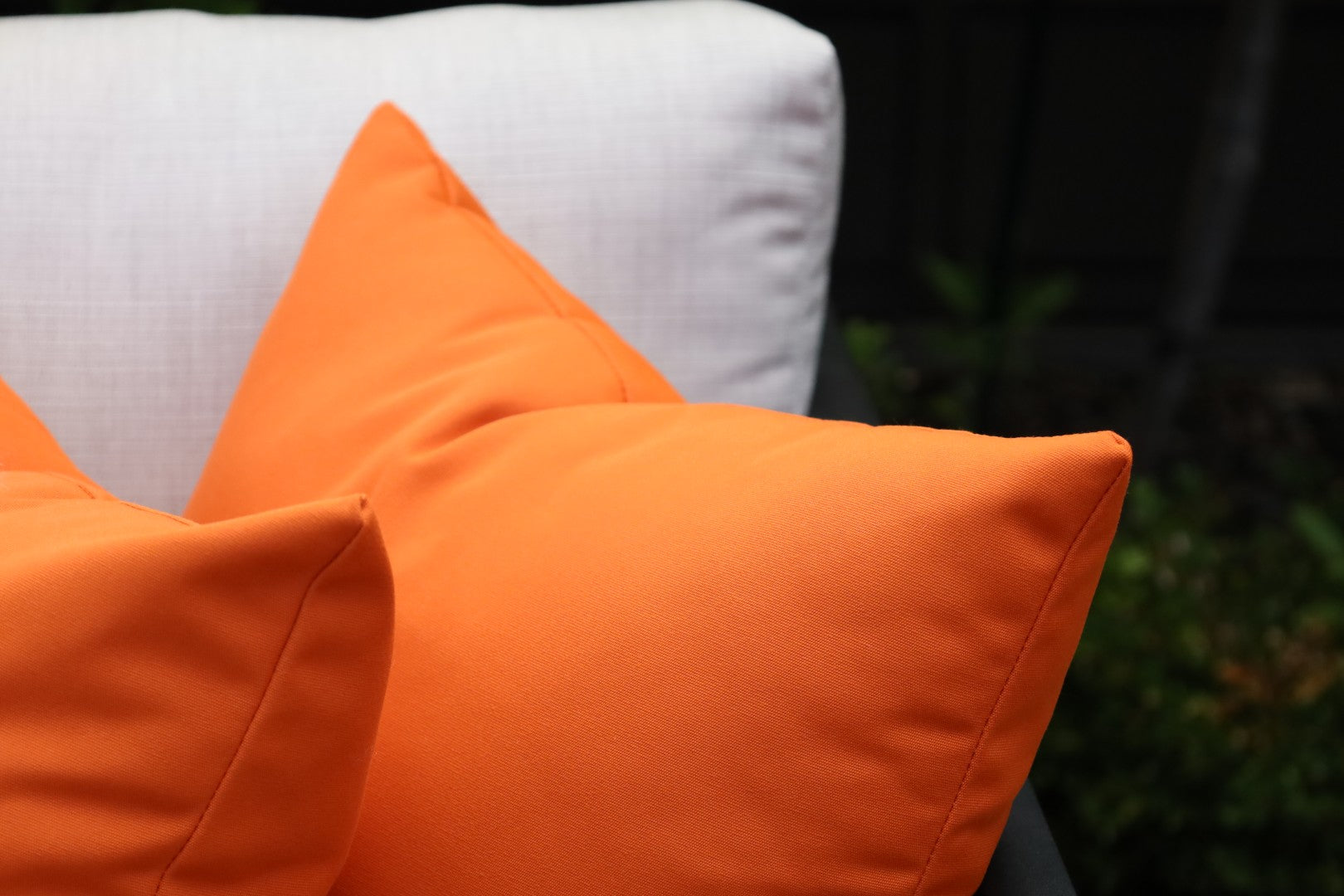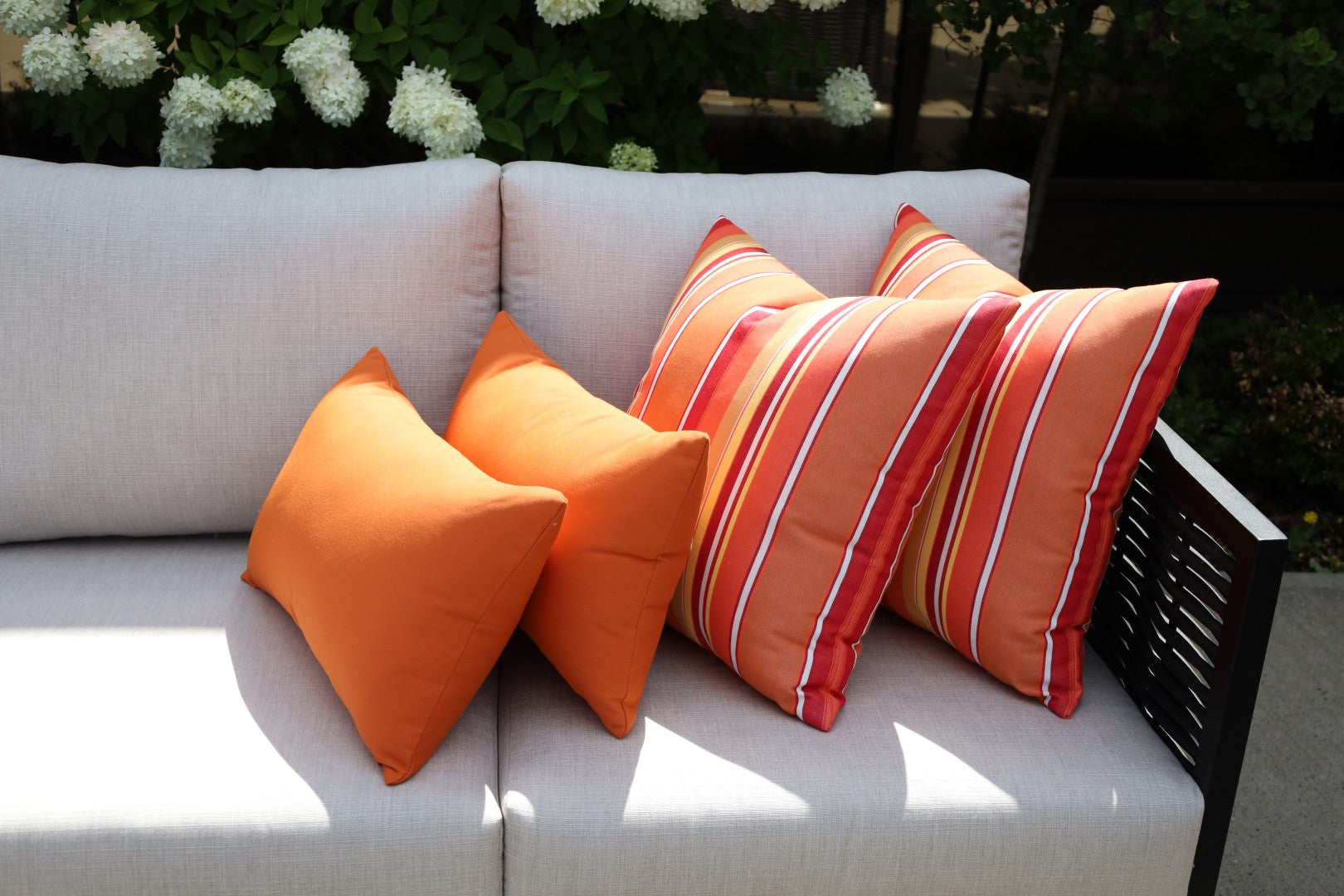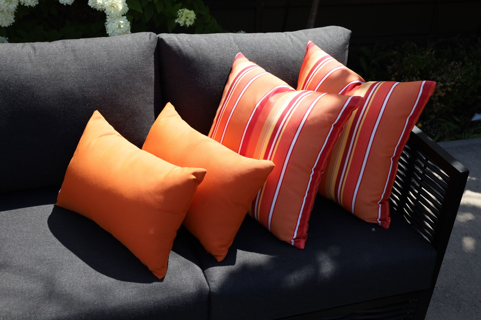 Bring Comfort and Durability to Your Outdoor Space with CINTIN Pillows Dolce Mango & Canvas Tuscan Set of 4 Enhance your patio, porch, or garden with the CINTIN Outdoor Throw Pillow. Designed for both beauty and performance, each pillow features a premium Sunbrella Dolce Mango & Canvas Tuscan cover—renowned for its superior resistance to water, fading, mildew, and UV rays.