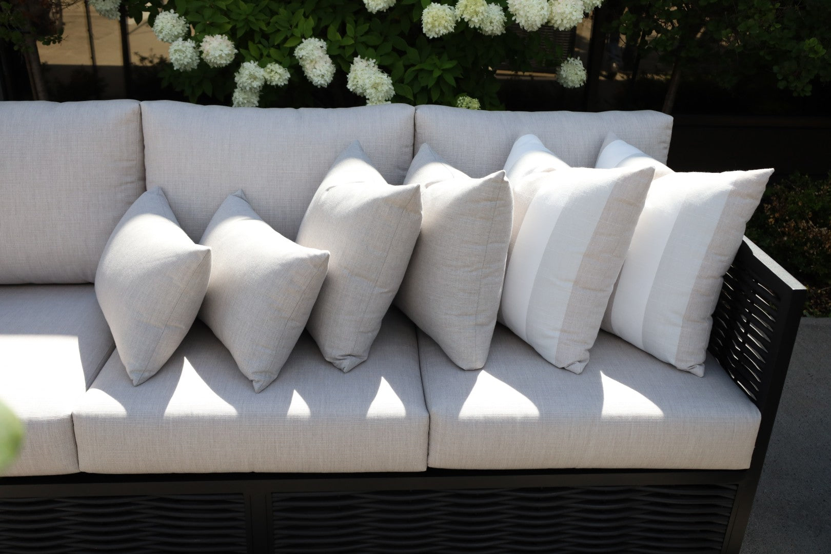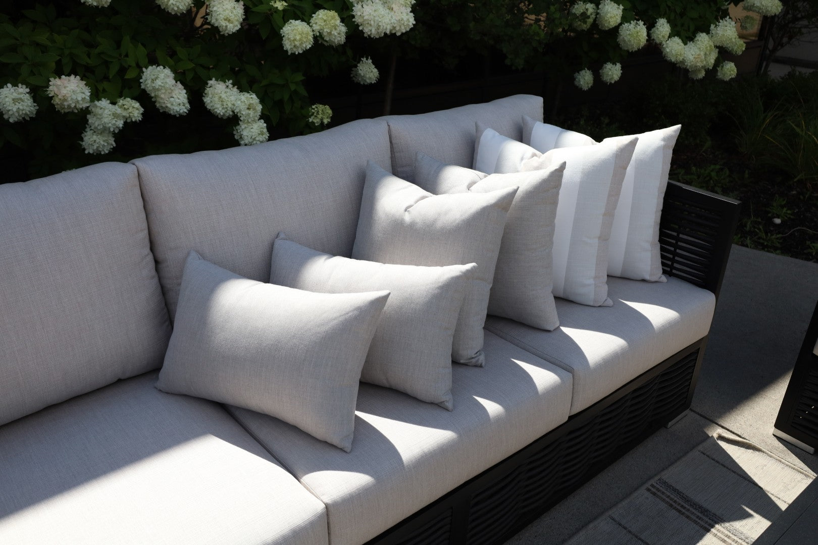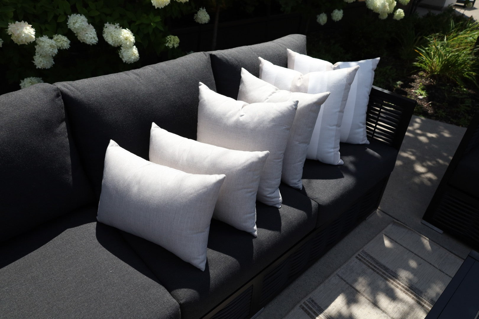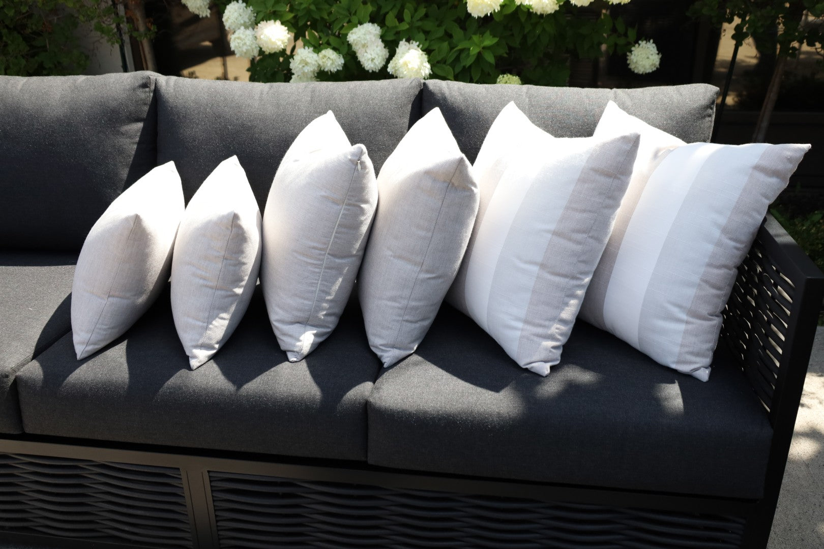 CINTIN Sunbrella Cast Silver and Direction Linen Outdoor Pillow Set of 6